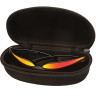 Повторяю, чехол отличный, черный, есть под ремень петлся, легкий, не пластик хрупкий и тяжелый,  но для другой формы очков, так сказать, стандартной. Моим маленький.